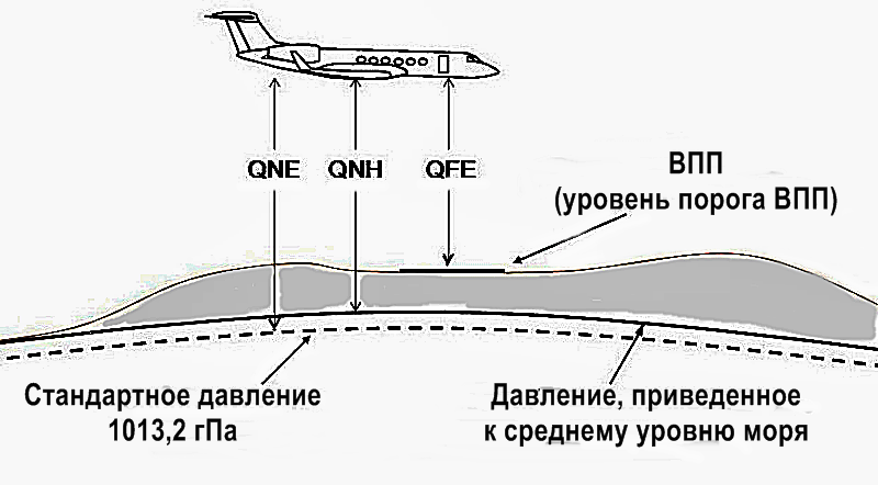 QNH, QFE, QNE: установка давления на высотомере